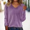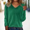 Women's Fashion Casual Solid Color V Neck Long Sleeve Pullover Sweater Top