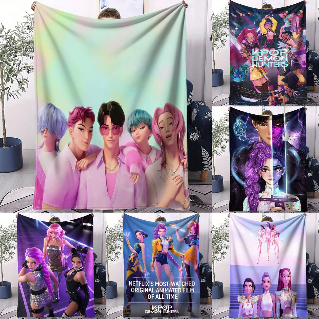 K-POP Huntrix & Saja Boys Flannel Blanket Hot Anime Throw Blanket for Home Living Room Travel Camping Office Napping Fan Gift