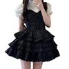 [LittleForBig] Adult Lolita Romper with Ribbon Bow and Lace, Front-Opening Cotton Pajamas, Black, Size S
