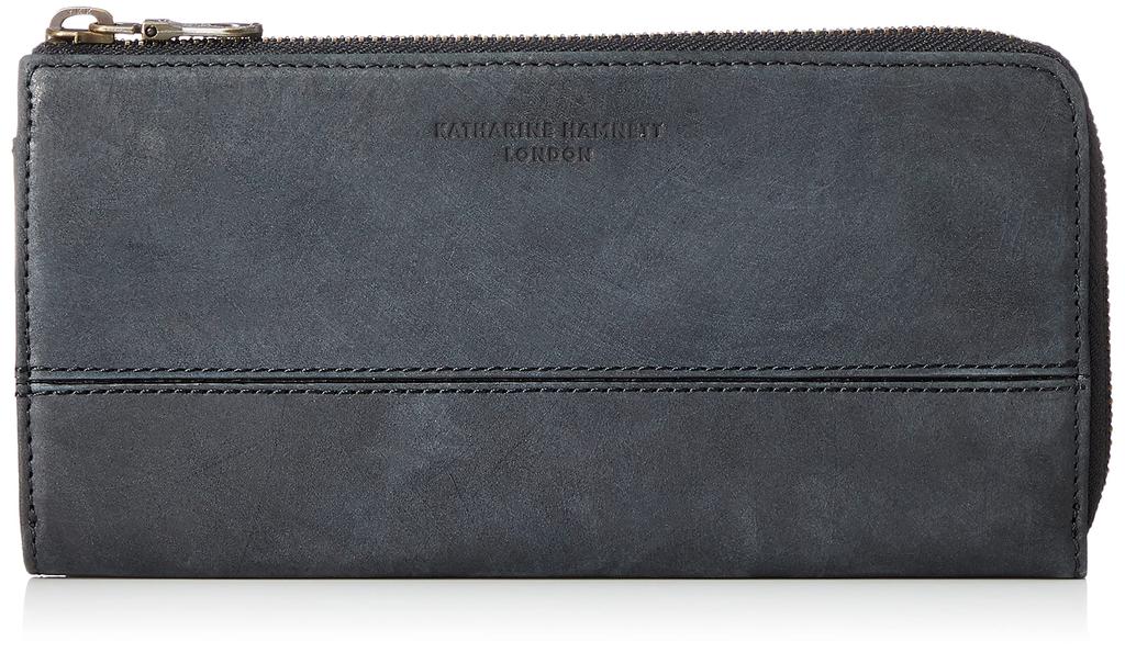 [Katherine Hamnett London] [SCRUB] Japanese Vegetable Tanned Leather with Handcrafted Scratch Pattern, Large Zipper Long Wallet