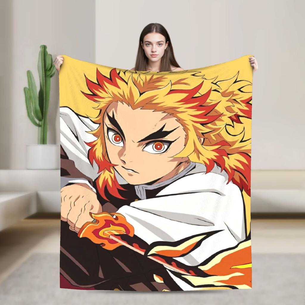 Flame Hashira Kyojuro Rengoku Blanket Anime Demon Slayer Fleece Awesome Breathable Throw Blanket for Coverlet Spring/Autumn