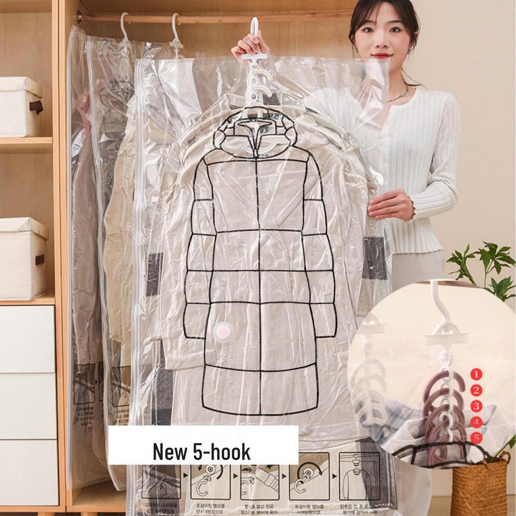 Extra Large Vacuum Storage Bag for Clothing with 5 Hooks