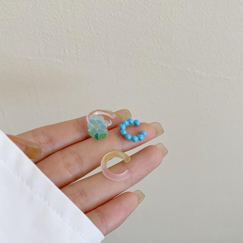 Ear Cuff Earrings Holeless Fashionable Girlish Adjustable Clip On Ear Jewelry for Girls 3 Pcs Blue