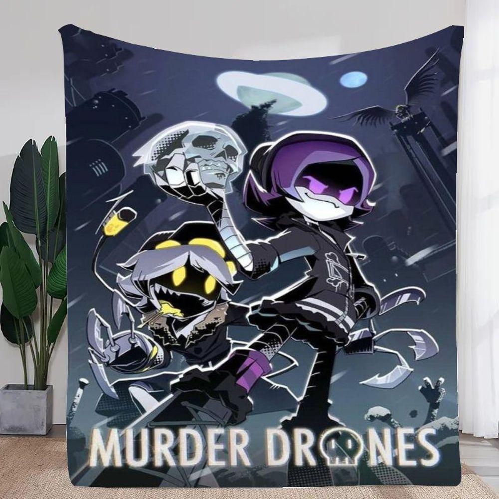 Murder Drones Dystopian Cityscape Plush Throw Blanket - Soft Cozy Fleece Blanket Featuring Cartoon Characters in Dark Gothic Art