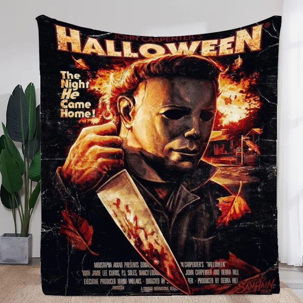Halloween Michael Myers Throw Blanket - Cozy Plush Fleece Blanket Featuring Iconic Horror Movie Design with Michael Myers and Ki