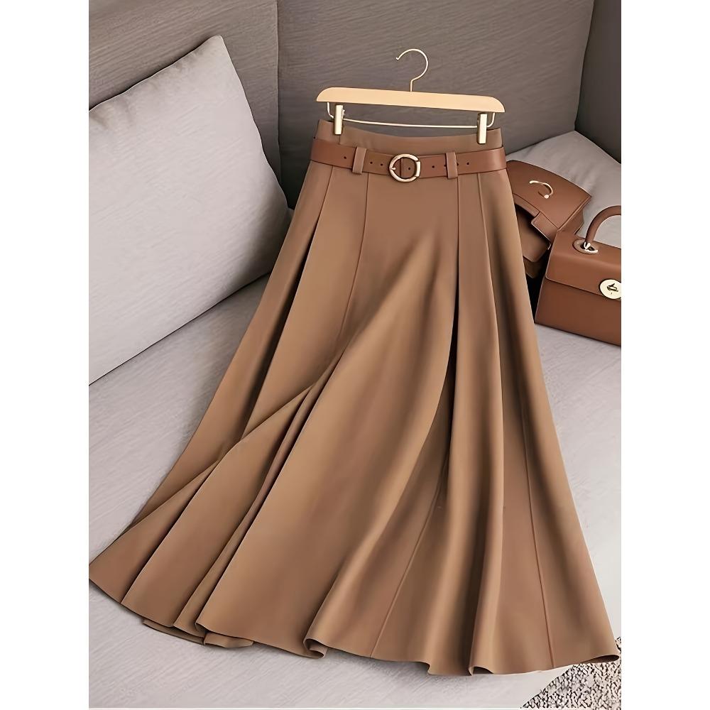 Women's A-Line Maxi Skirt Elegant Solid Color Flared Umbrella Hem with Multiple Vertical Pleats Skirt(No belt included)