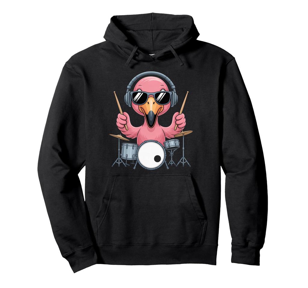 Drum Kit Flamingo Sunglasses Headphones Rock Jazz Rhythm Beat Cool Hoodie