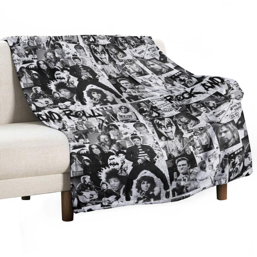 ROCK AND ROLL Tapestry Throw Blanket Plush Bed linens Vintage cosplay anime Blankets