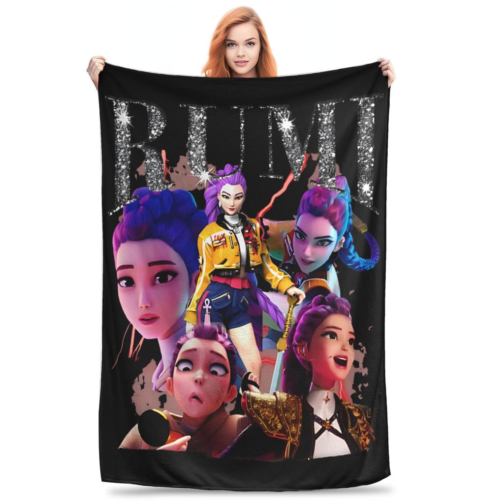 Rumi Kpop Demon Hunters Soft Blanket Camping Plush Bedding Throws Aesthetic Couch Chair Flannel Bedspread Sofa Bed Cover