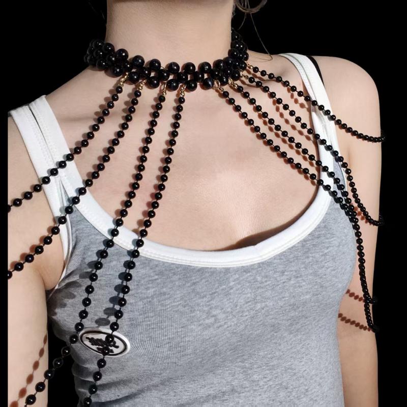 Bridal Tassel Imitation Pearl Shoulder Chain Necklace Elegant Cheongsam Dress Shawl Wedding Jewelry Accessories Gift For Women