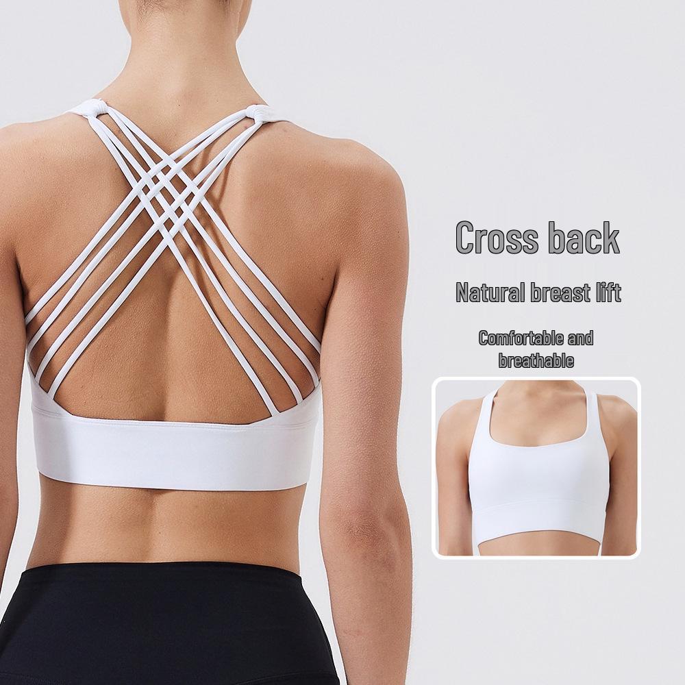 Women's High Elastic Criss-Cross Back Sports Bra - Nude Feel for Yoga and Running