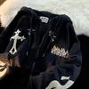 Retro Oversize Hoodie Sweatshirt Women's Casual Outerwear Spring Autumn Coat Fun Print Couple's Loose Fit Cardigan