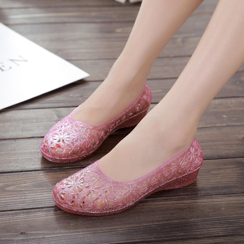Letní nové protiskluzové sandály Dámské křišťálové želé plastové s plochým spodním otvorem duté ptačí hnízdo proti zápachu a voděodolné plážové boty