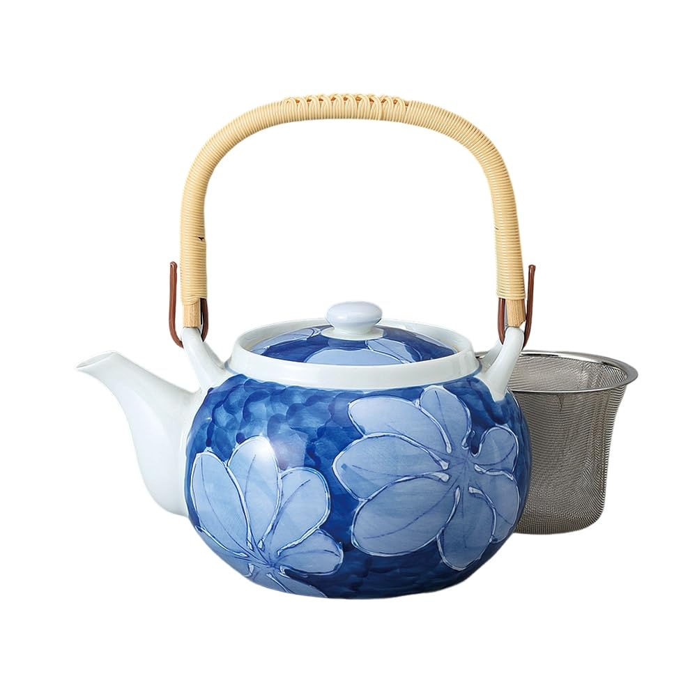 Ale-net Teapot (Stainless Steel with Strainer) 850cc Arita Ware, Dark Leaf Color, with Basket Mesh, No. 6 Teapot, Porcelain, Made in Japan, Stylish