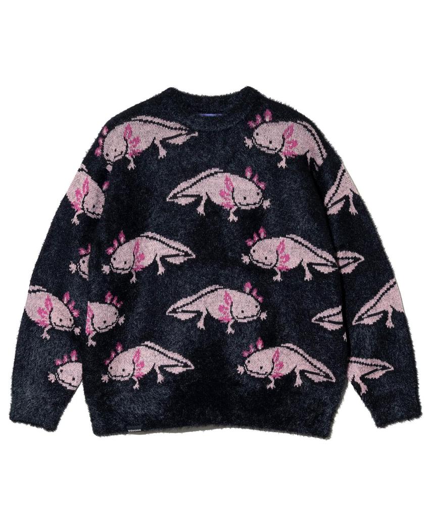 [go slow caravan] 356107 Axolotl Shaggy Mix Jacquard Knit Big Sweater, Black, Size L