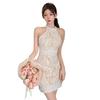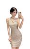 Allegra K Women's Sparkling Sequin Tank Dress, Sleeveless, Party Dress, Slim Fit, Short, Silver, Size S