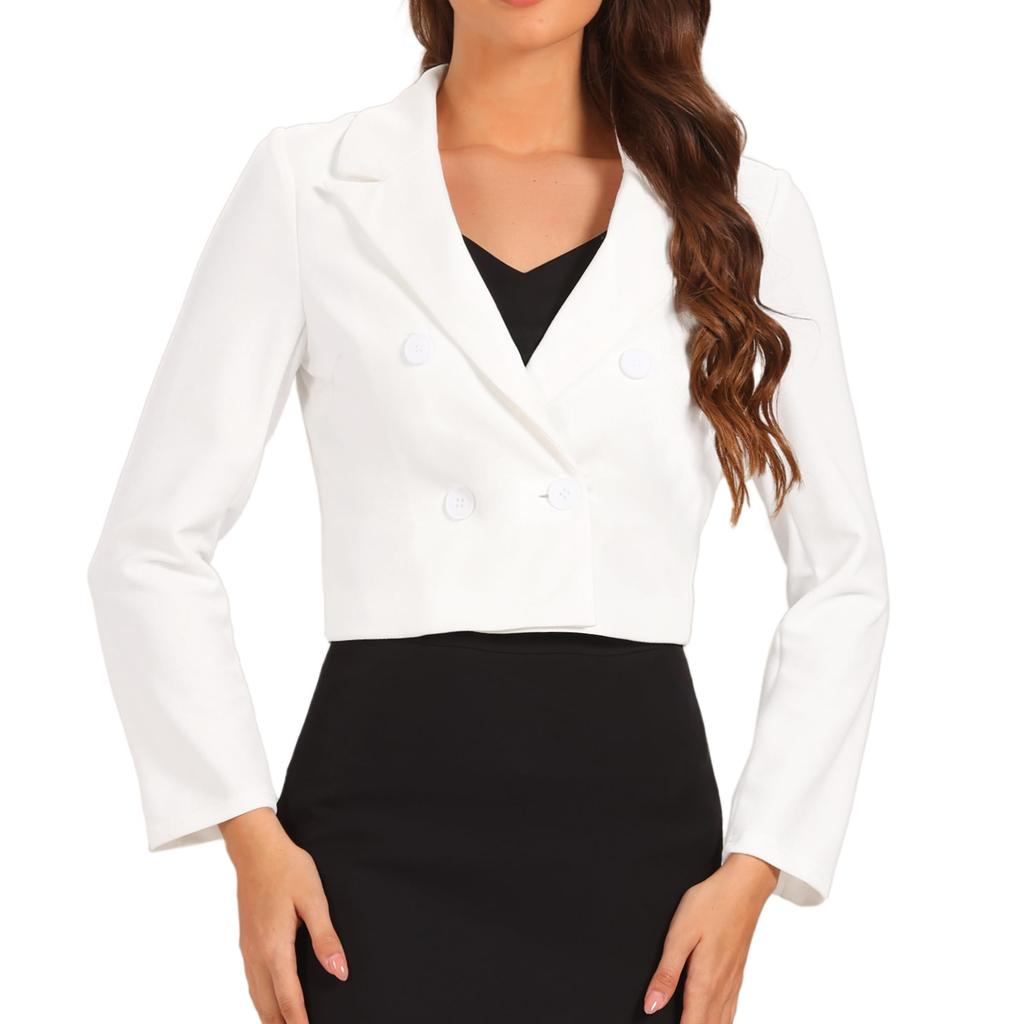 Allegra K Women's Cropped Blazer Jacket with Notch Lapel Collar, Long Sleeves, Solid Color, Casual, Office, Commuting, White, Size M