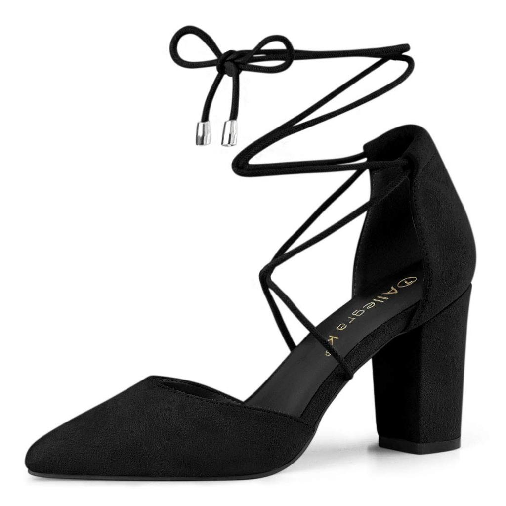 Allegra K Women's Lace-Up Pumps with Chunky Heel and Pointed Toe, Black, Size 24.0 cm