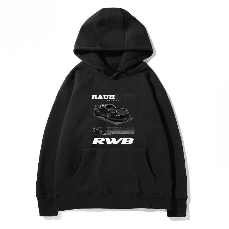 RWB Modified Car 911 Black Hooded Hoodie Men and Women of The Same Model 2024 New Autumn and Winter Casual Loose Top Clothing