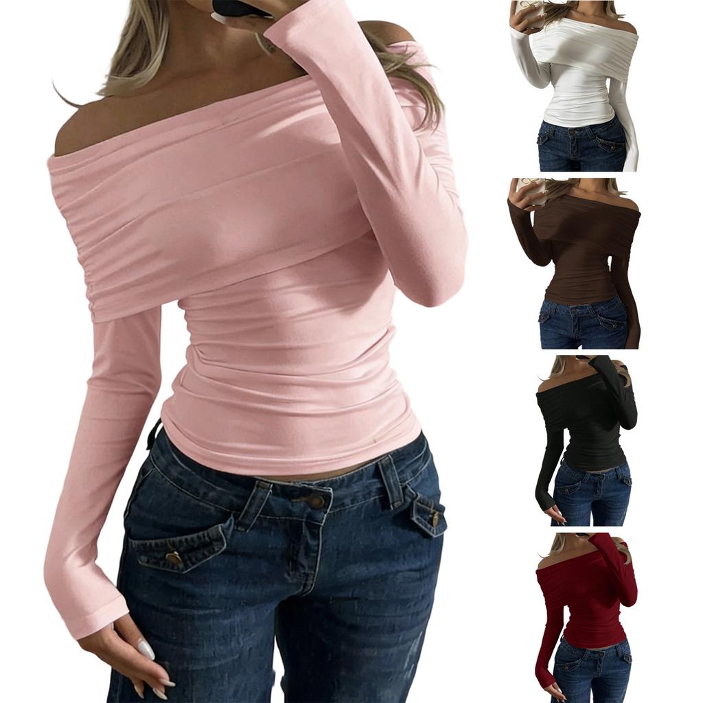 Spring One Shoulder Versatile Women's Fashionable Slim Fit Long Sleeved Top
