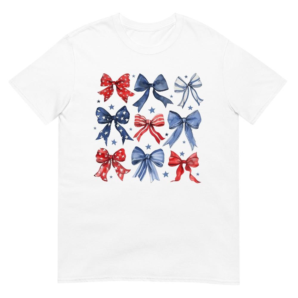 4th Of July America Patriotic bow ribbon T-Shirt for Women Girls Kids Men