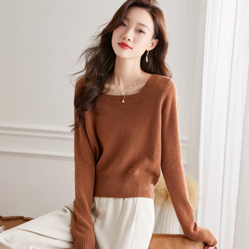 Women's 100% Wool Slim-Fit Square Neck Knit Sweater