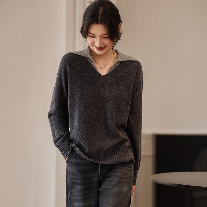 Srcr Women's 100% Merino Wool Faux Two-Piece Lapel Sweater