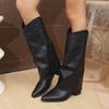 Women's Fold Over Knee High Boots Wide Calf Chunky Heel Long Boots Women Pointed Toe Dress Tall Boots for Women Slouchy Boots