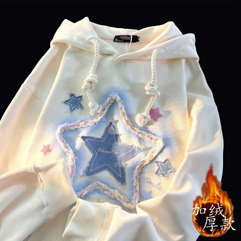 Women's New Spliced Pullover Hooded Star Patch Fashion Loose Versatile Casual Long-sleeved Sweatshirt