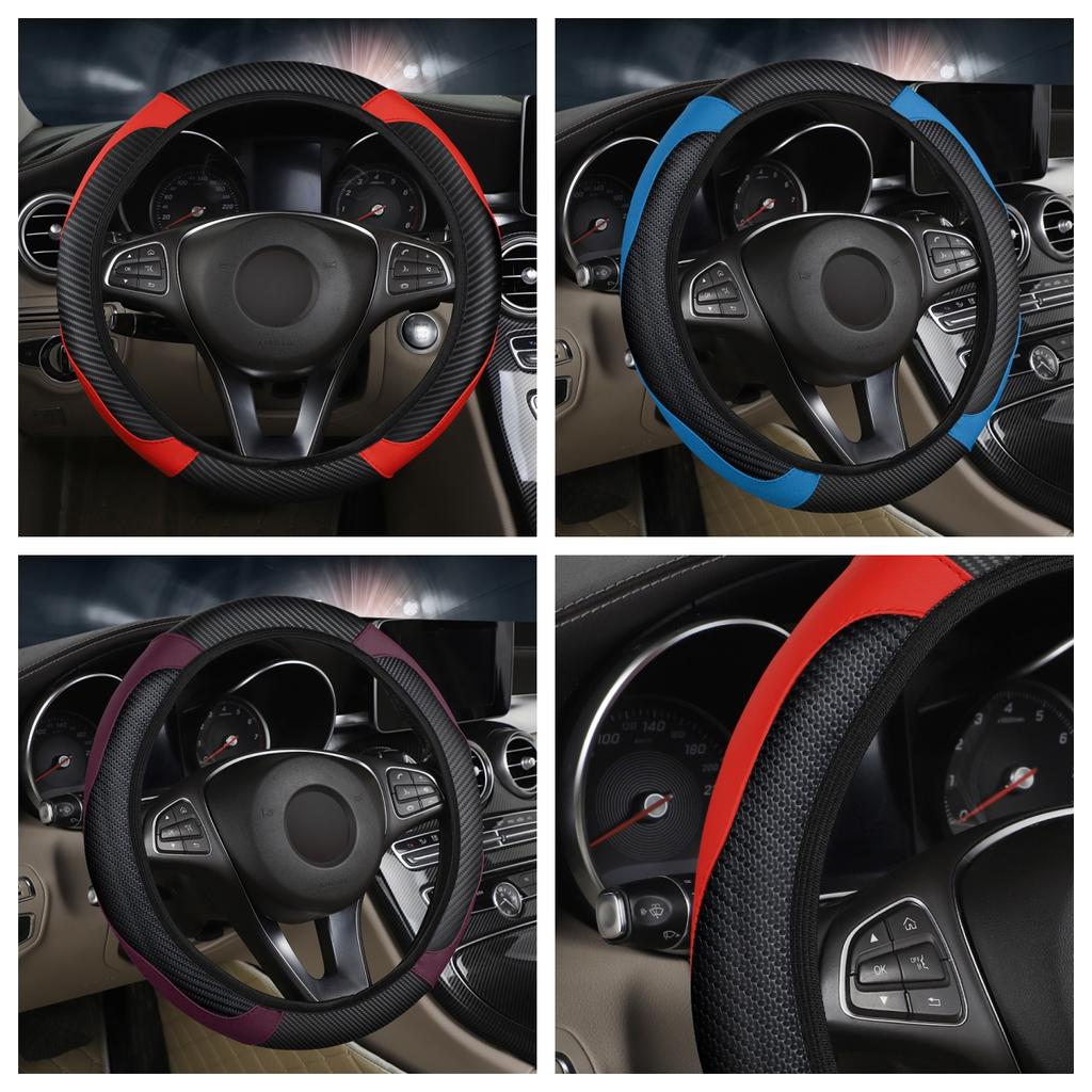 Car Steering Wheel Cover Breathable Anti Slip Steering Covers Suitable 37-38.5cm Auto Decoration Carbon Fiber PU Leather