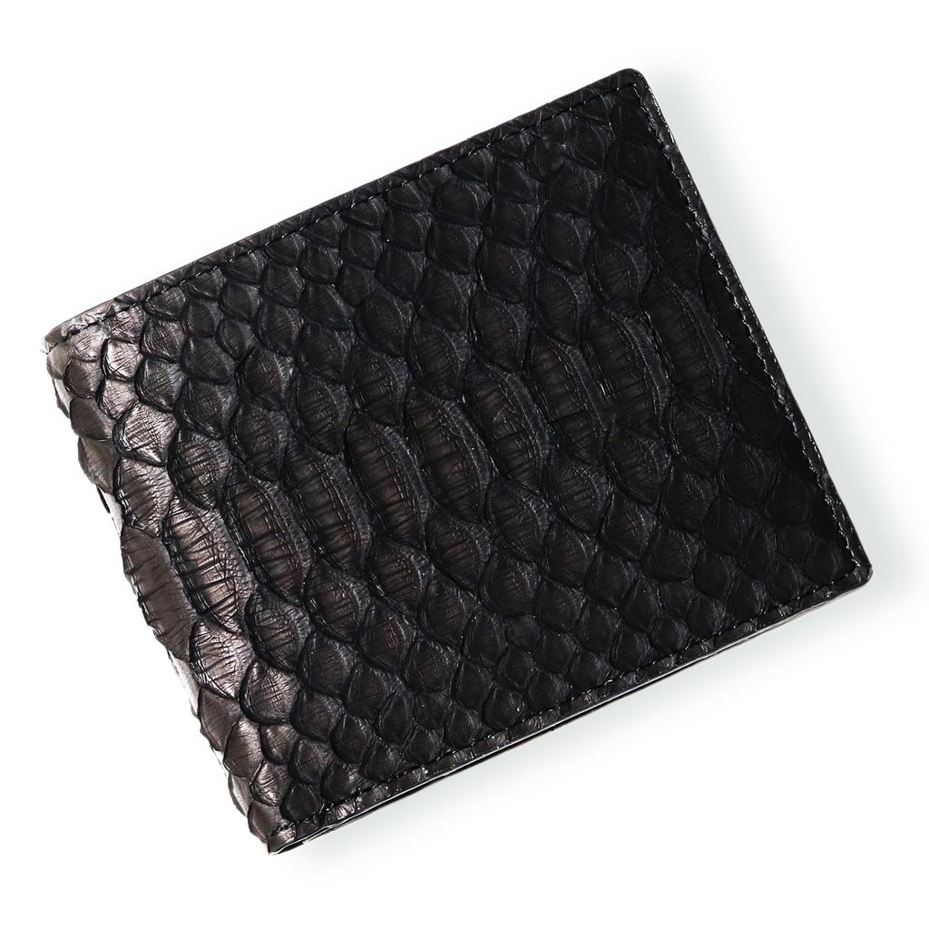 CLW Crocodile Leather Works Diamond Python Bifold Wallet (Bill Compartment) in Black. Made in Japan with Diamond Python and Snakeskin Leather. Men's,