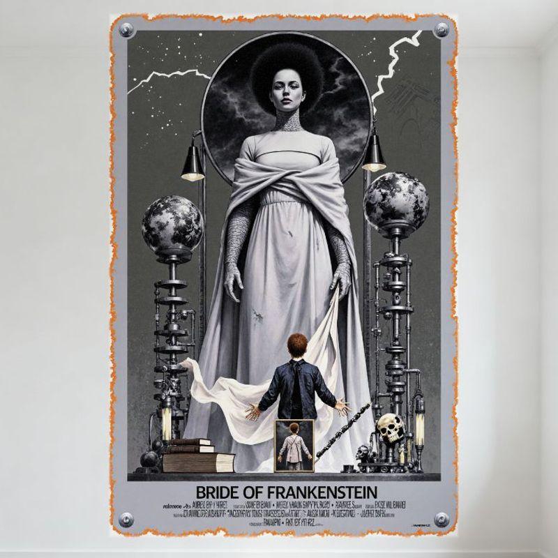 Bride of Frankenstein Gothic Horror Metal Tin Sign, Vintage Movie Poster Plaque for Home Bar Cafe Man Cave Decor, Frankenstein C