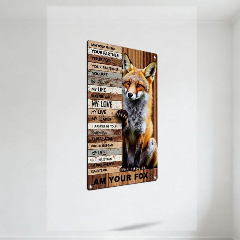 Rustic Wooden Fox Plaque with Motivational Phrases Metal Backing Decorative Wall Hanging for Home Man Cave