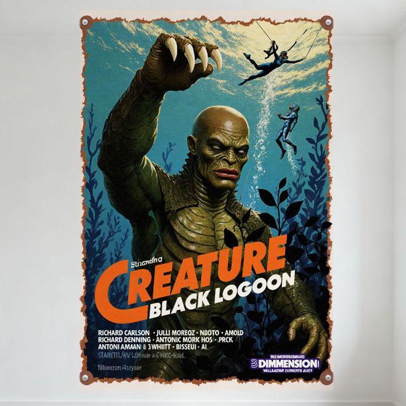 Vintage 'Creature from the Black Lagoon' Metal Tin Sign, Horror Movie Wall Plaque for Home Bar Man Cave Cafe Decor