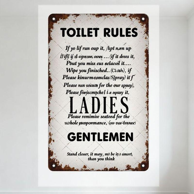 Vintage Toilet Rules Metal Tin Sign, Ladies & Gentlemen Rustic Distressed Wall Decor for Home Bar Cafe Man Cave, Weathered Recta