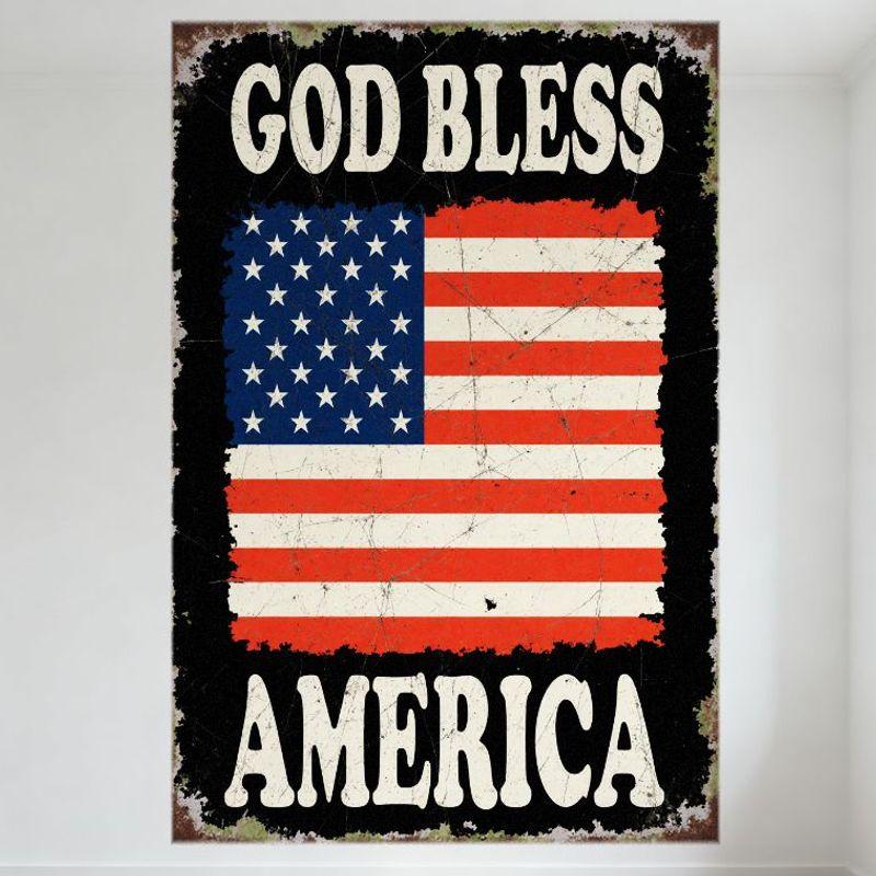 Vintage God Bless America American Flag Metal Tin Sign Distressed Black Background Wall Art for Home Bar Man Cave Decor Patrioti
