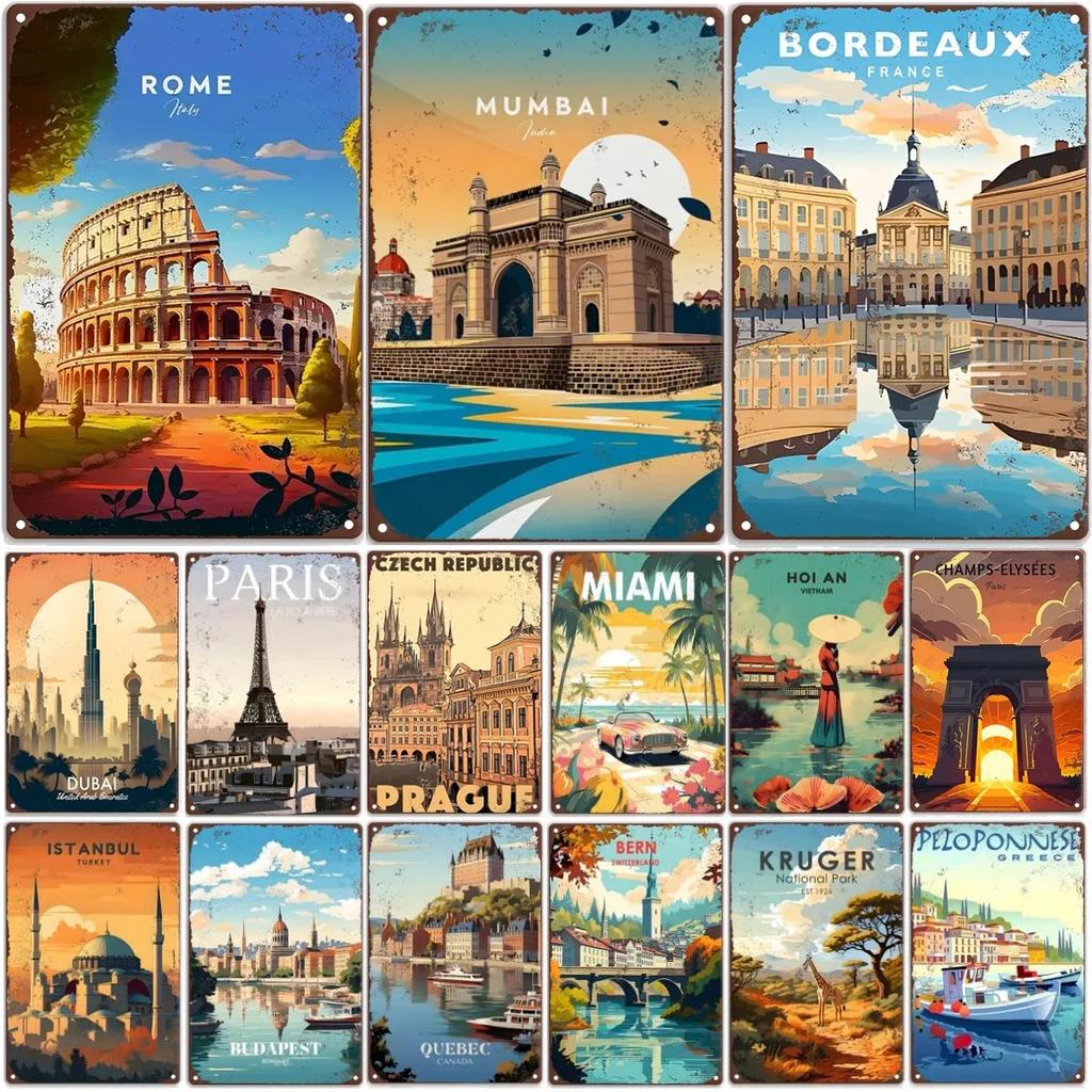 Retro Metal Sign Travel Round The World,ROME,FRANCE,MUMBAI Vintage Art Poster,Home,Bar,Room,pub,Hotel,Cafe,Club Wall Decor Gift