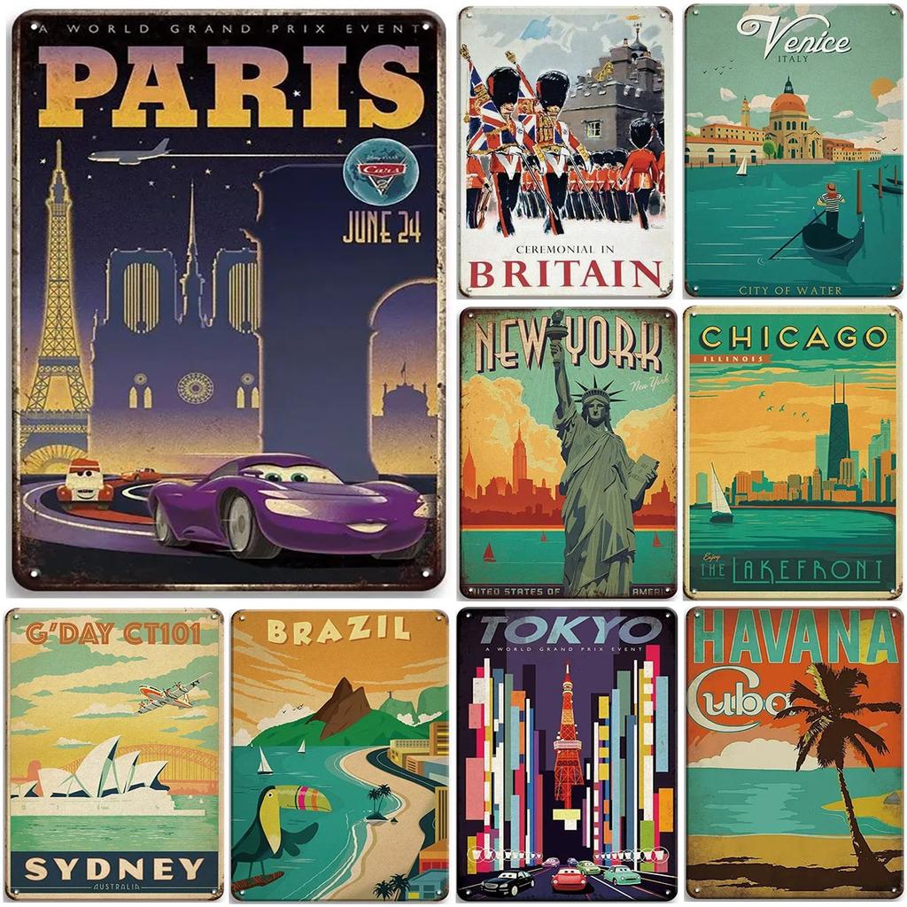 Metal Tin Signs Paris New York Wall Decoration Plaque Vintage Art Poster Iron Painting for Man Cave Home Cafe Garden Club Bar