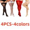 4Pair/SET Lace Over Knee Thigh High Stockings Elastic Sexy Thin Black Fishnet Stocking Set White Plus Size Long Socks for Woman