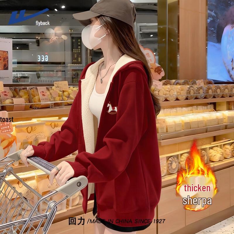 Warrior Women's Festive Red Lamb Velvet Hooded Cardigan