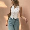 Modré pruhované tričko bez rukávů Letní Nová Móda Ležérní Vesta se šňůrkou v pase zeštíhlující Tričko bez rukávů
