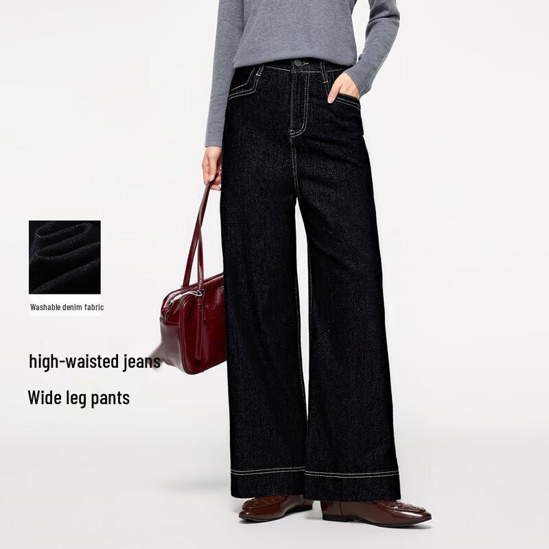 FivePlus Women's High-Waist Loose Fit Straight Wide-Leg Denim Jeans