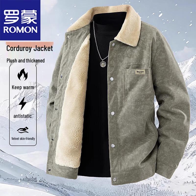 Romon Men's Fleece-Lined Winter Lapel Jacket
