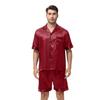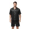 Yousheng 2Pcs/Set Men Pajamas Set Lapel Short Sleeve Single Breasted Tops Elastic Waist Shorts Set Solid Color Satin Sleepwear