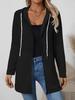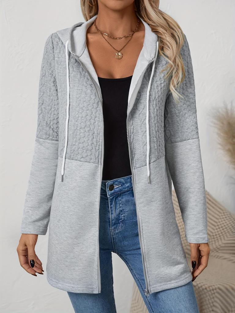 2025 Women's Autumn and Winter Solid Color Corrugated Pocket Stitching Casual Loose Women's Hooded Jacket