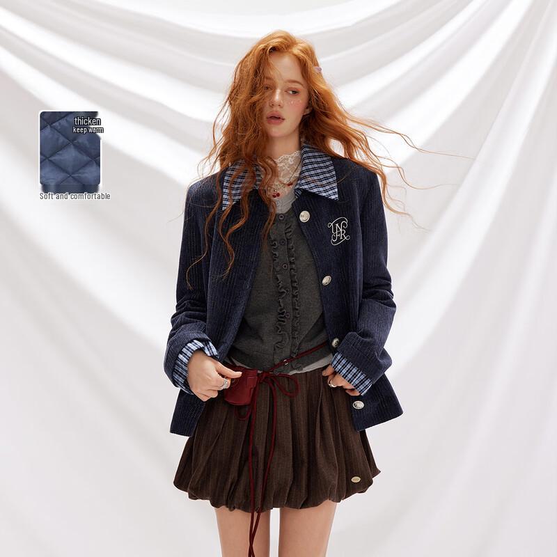 UNIFREE Women's Plus Size Faux Two-Piece Spliced Padded Blazer Jacket