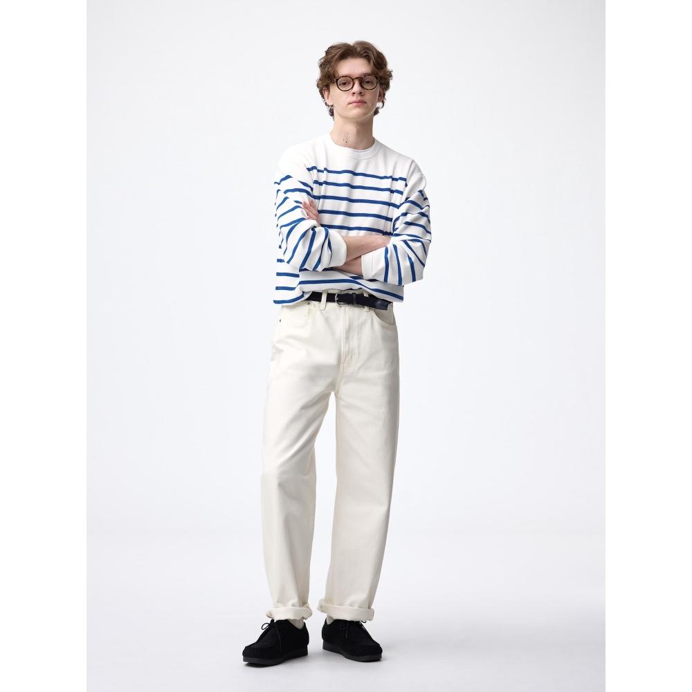 GU Baggy Jeans feature a classic style with modern colors and silhouettes that go well together. It uses high-quality denim material, known for its durability and vintage processing feel. The wide straight silhouette pairs well with various tops, and it is equipped with a basic and simple 5-pocket design.