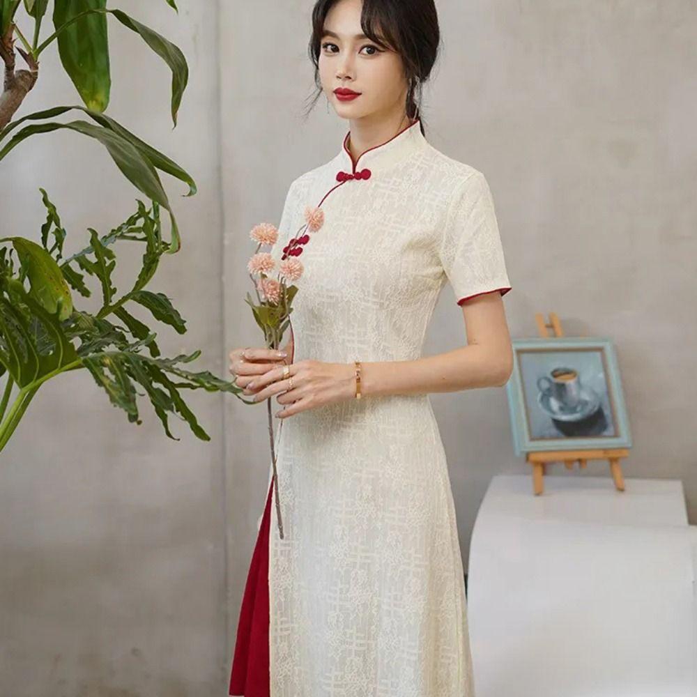 China-Chic Qipao Dress Short Sleeve Cheongsam Stand Collar Traditional Chinese Dress Wedding