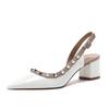 These elegant mid-heel sandals are perfect for the summer season, offering a blend of comfort and style. Crafted with a premium leather upper, these shoes feature a unique pointed-toe design embellished with studs for a chic look. The peep-toe front and backless silhouette provide breathability and ease, ideal for warm weather outings. Supported by a sturdy chunky heel, these sandals ensure stability as you step confidently. The rubber sole offers excellent traction, while the microfiber lining adds a soft touch to keep your feet comfortable all day long. Ideal for both casual and dressy occasions, these sandals effortlessly elevate your ensemble.