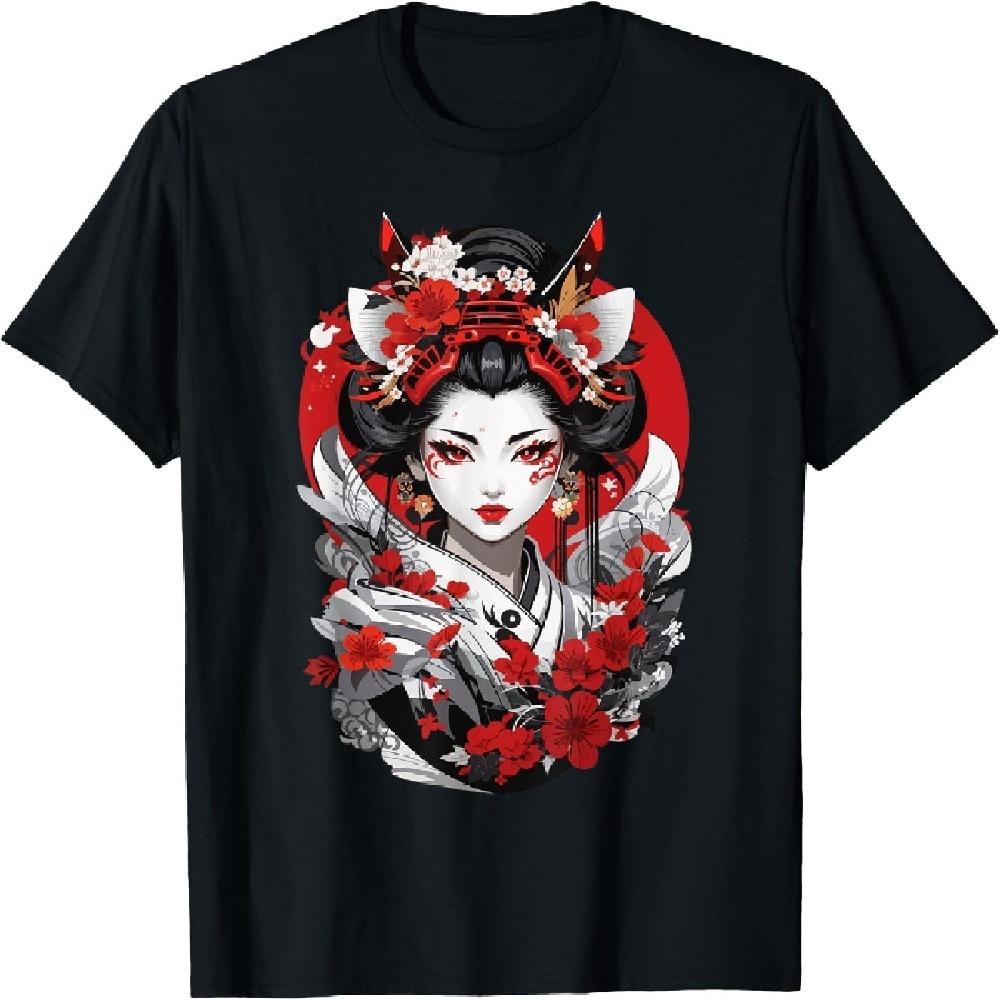 Aesthetic Geisha Design Anime Cherry Blossom Streetwear T-Shirt